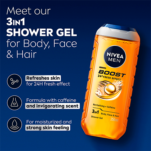 • Med plantebaseret fugtighedscreme • Med naturligt udvundet koffein • 24H frisk effekt • 3 i 1: Krop, ansigt og hår