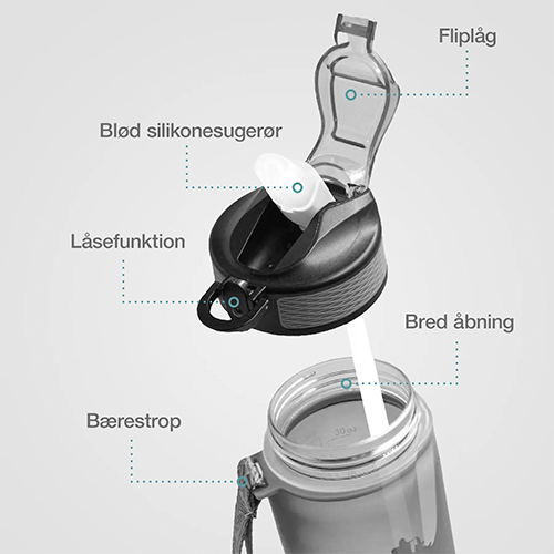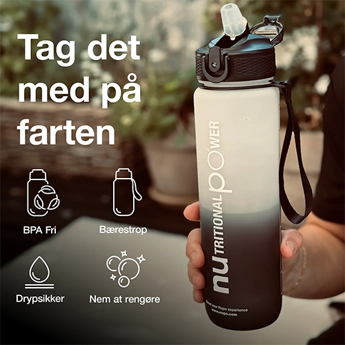 Boost din energi med hver vanddråbe! Du kan nemt holde styr på hvor meget du drikker med den lette Nupo Smart Water Bottle, som har en smart tracker og rummer 1000 ml.