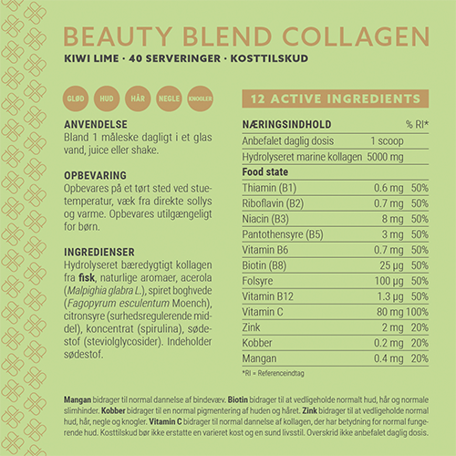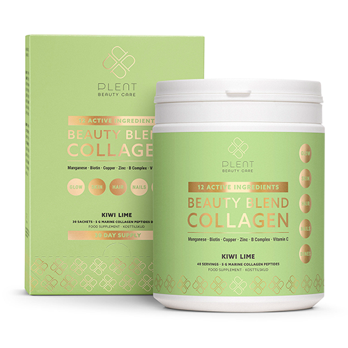 PLENT Beauty Blend Collagen er klinisk dokumenteret kosttilskud der reducerer synligheden af rynker og øger både hudens fasthed og fugtighed. Alle varianterne er tilsat 12 aktive vitaminer og mineraler.
