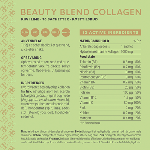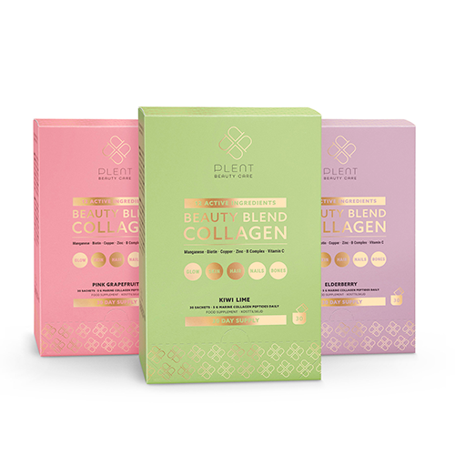 PLENT Beauty Blend Collagen er klinisk dokumenteret kosttilskud der reducerer synligheden af rynker og øger både hudens fasthed og fugtighed. Alle varianterne er tilsat 12 aktive vitaminer og mineraler.