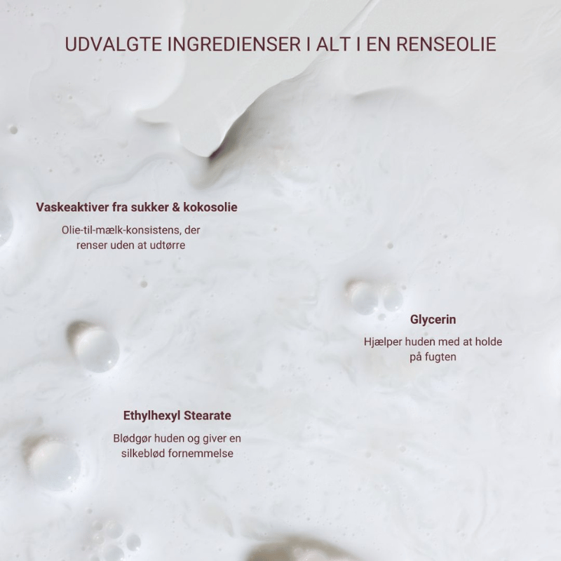 ALT I EN RENSEOLIE renser huden effektivt, fjerner alle slags makeup og er samtidig god ved huden.