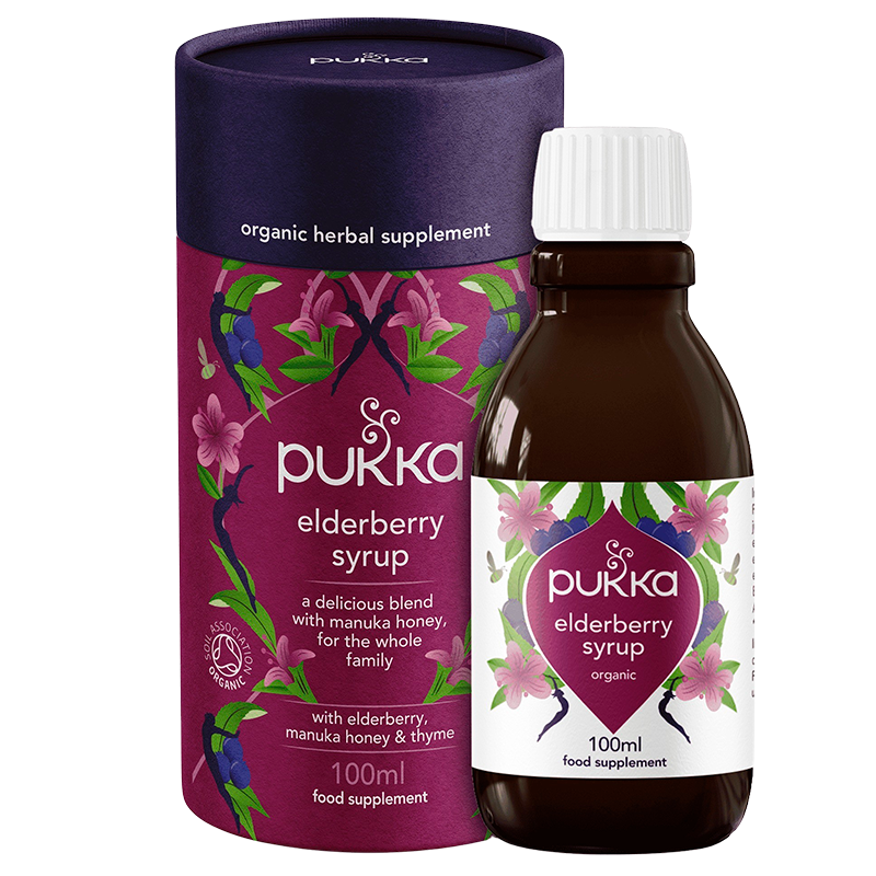 Pukka Elderberry sirup (mikstur) er et økologisk kosttilskud