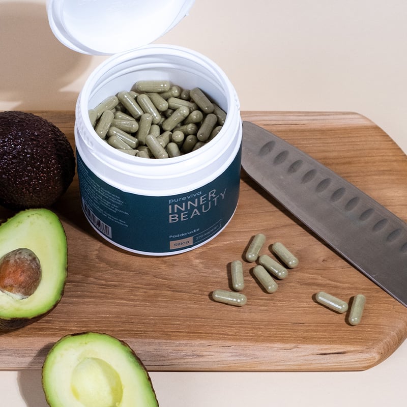 Kosttilskud beriget med silicium til styrkelse af hår, hud, knogler og negle.