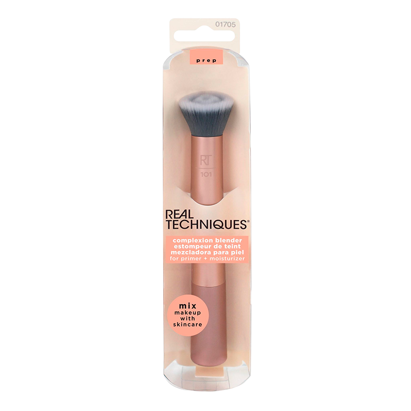 Real Techniques Complexion Blender Brush er designet til at skabe en smuk og ensartet makeupbase. Den gør påføringen af dine yndlingsprodukter til en ubesværet oplevelse. Med sit fokus på funktionalitet hjælper børsten dig med at blende produktet fejlfrit ind i huden. Dette minimerer synligheden af striber og kanter for et glat resultat. Finishen bliver naturlig, så din makeup smelter sammen med huden. Børsten er et uundværligt redskab i enhver makeuprutine, uanset om du er nybegynder eller har stor erfaring med makeup.