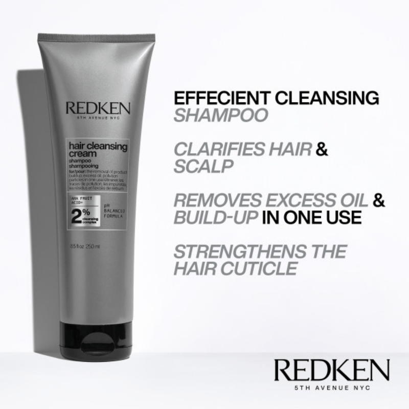 CREMET SHAMPOO Redken Hair Cleansing Cream Shampoo (250 ml) er en rensende shampoo til alle hårtyper. Denne shampoo er fremstillet med en cremet konsistens, der effektivt fjerner tørshampoo, overskydende olier, mineraler og andre unødige produktrester.
