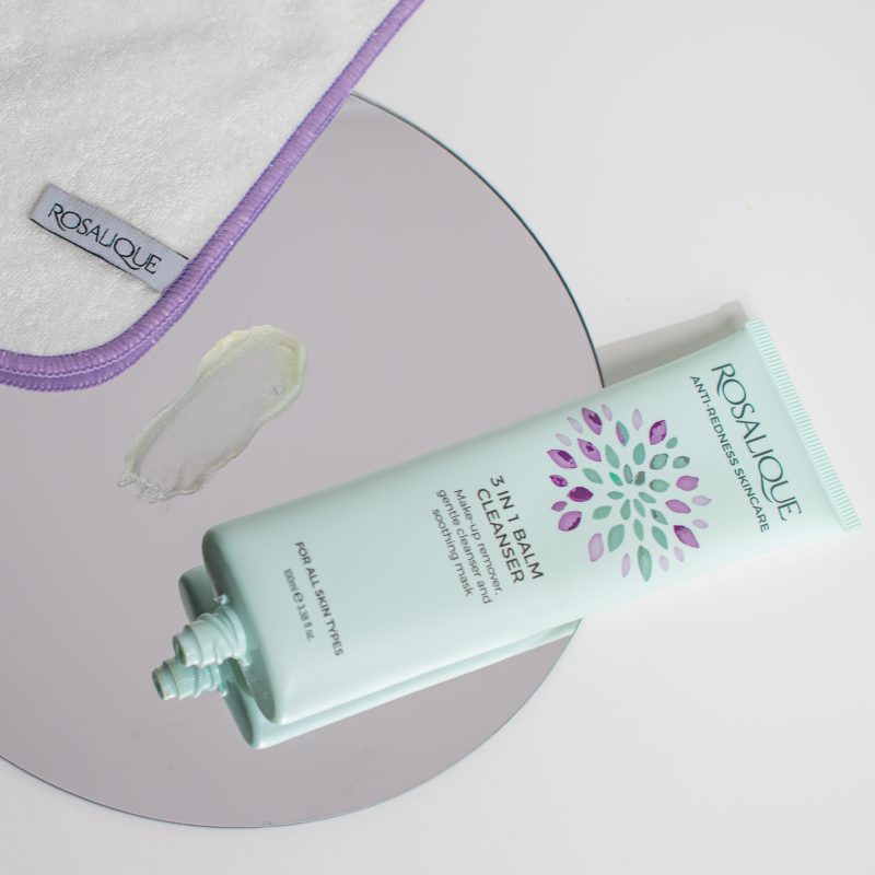 3-i-1 Balm Cleanser fra Rosalique smelter sig ind i huden og renser make-up væk, samtidig med at den beroliger og nærer huden med rødme-reducerende ingredienser (Bisabolol, Centella Asiatica og Tocopherol (E-vitamin)). Kan bruges om morgenen som det første skridt i din daglige rutine, og om aftenen for at fjerne makeup, snavs og urenheder.