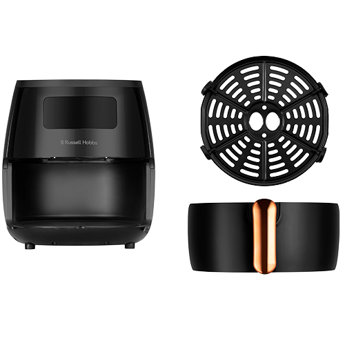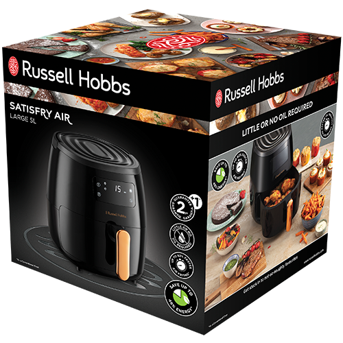 Satisfry Air Fryer - 5L. Large Air Fryeren steger, bruner og bager med lidt eller ingen olie påkrævet. Kød forbliver saftigt, da tilberedningsprocessen hjælper med at bevare naturlige safter. Sparer op til 48 % energi sammenlignet med en konventionel ovn.