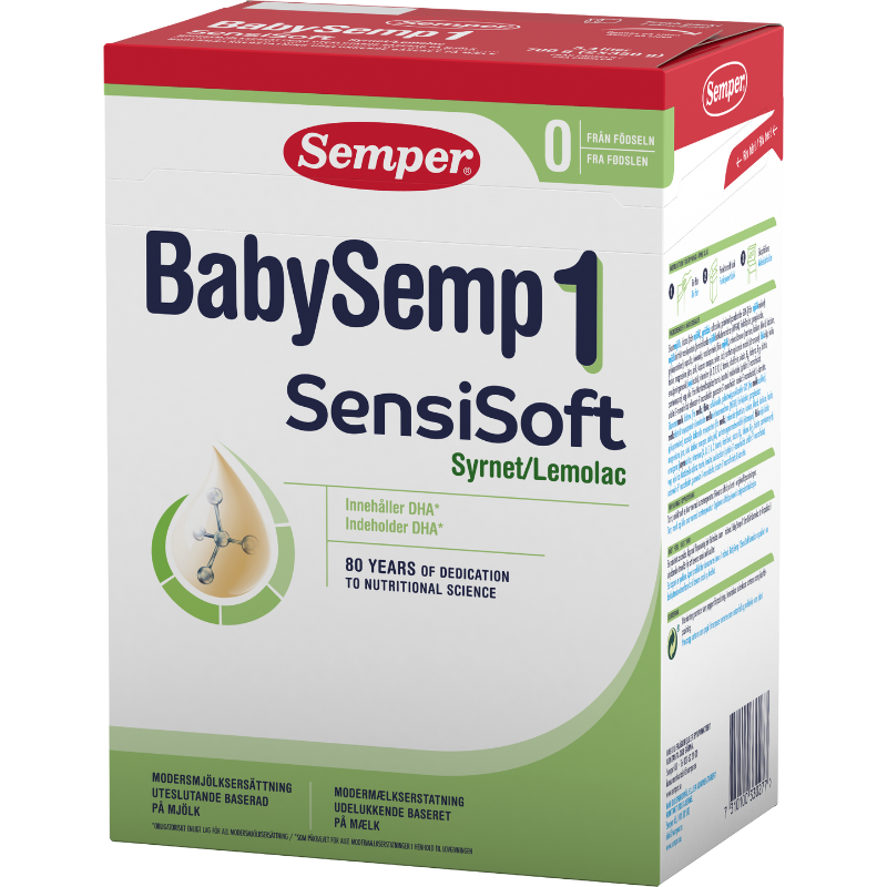 Semper BabySemp 1 Sensisoft: Mælkebaseret modermælkserstatning med jern, D-vitamin, calcium og DHA – støtter spædbarns udvikling fra fødslen. Nem og tryg tilberedning.