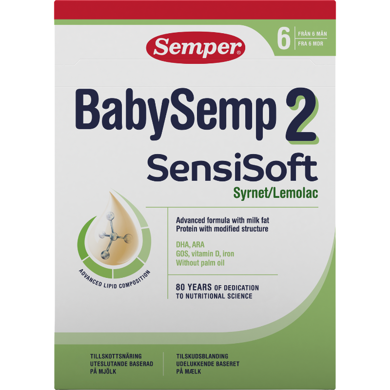 BabySemp 2 SensiSoft er en tilskudsblanding baseret udelukkende på mælk. BabySemp 2 SensiSoft indeholder mælkefedt og er fri for palmeolie.
