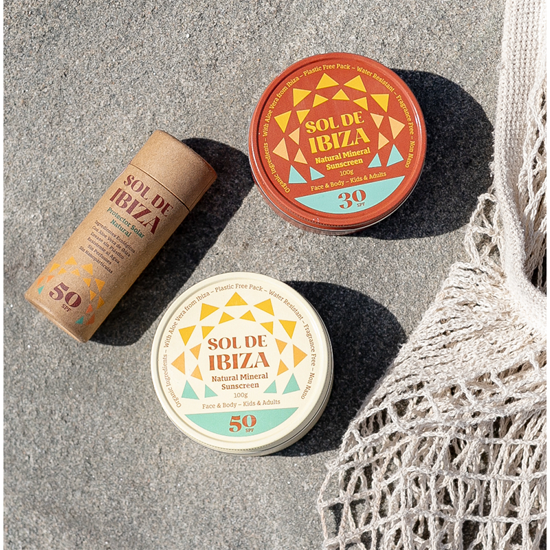 SOL DE IBIZA er certificeret økologisk og vegansk solcreme af naturlige ingredienser med et zink baseret fysisk/mineralsk solfilter. Skabt med omtanke for dig og miljøet - i 100% plastikfri emballage.