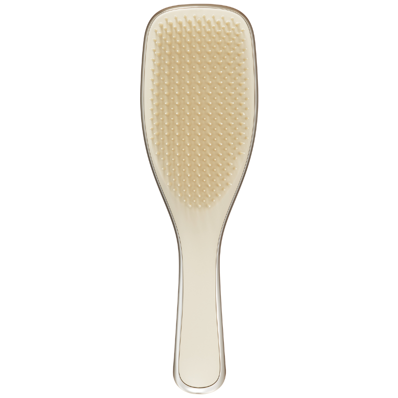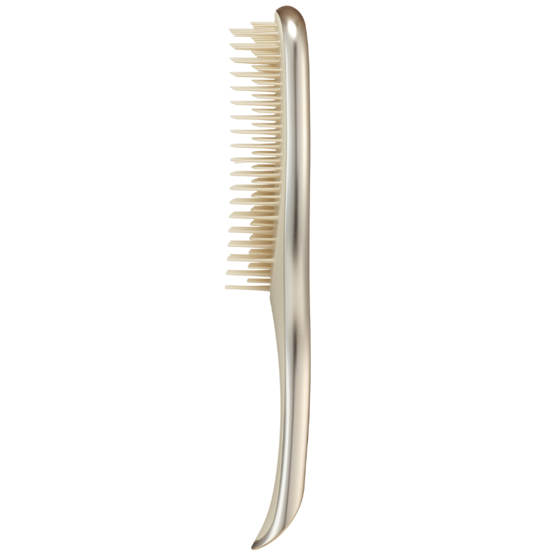 Ultimate Detangler Chrome Champagne Gold forener elegance og innovation, løsner skånsomt knuder med patenterede tænder for glat og tidløst hår uden slitage.