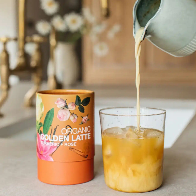 En gylden latte blanding med gurkemeje, varmende krydderier, vanilje og et strejf af aromatisk rose. Perfekt sødet med kokosblomstsukker. Ren økologiske nydelse i hver eneste kop latte.