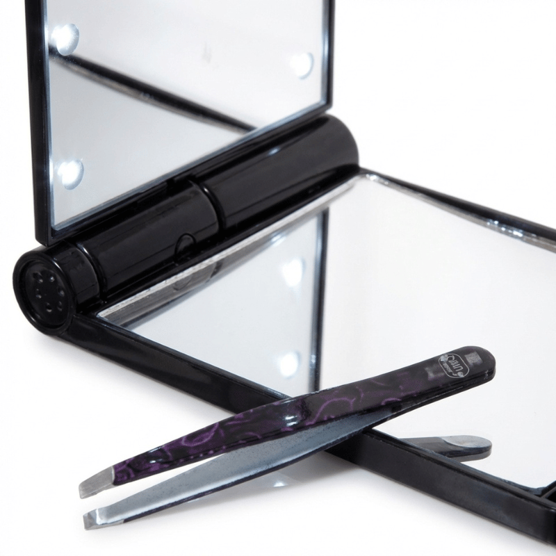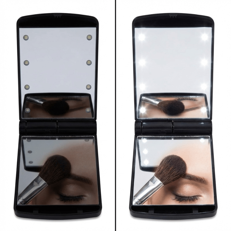 Lommespejl med LED-lys: Kompakt lommespejl med LED-lys til touch-ups når lyset er dårligt. Perfekt til tasken og hurtige tjek på farten.