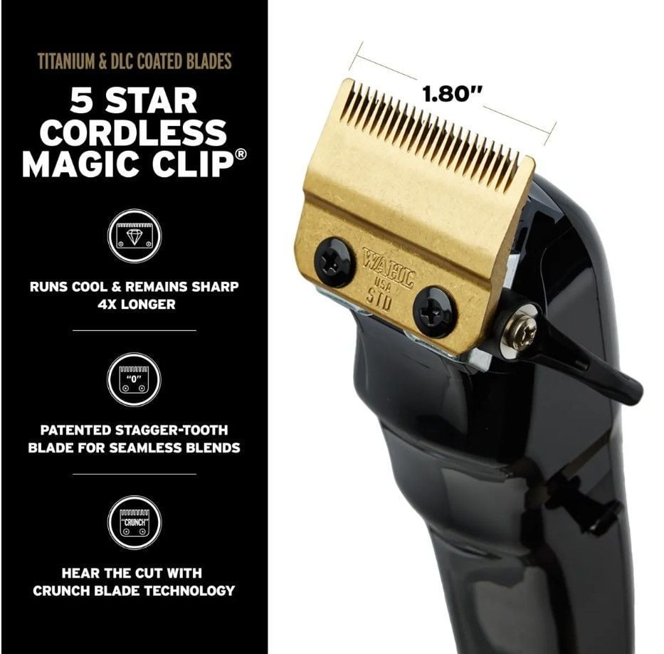 Wahl 5-Star Cordless Barber Combo™ kombinerer de bedst sælgende Cordless Magic Clip® og Cordless Detailer Li®
