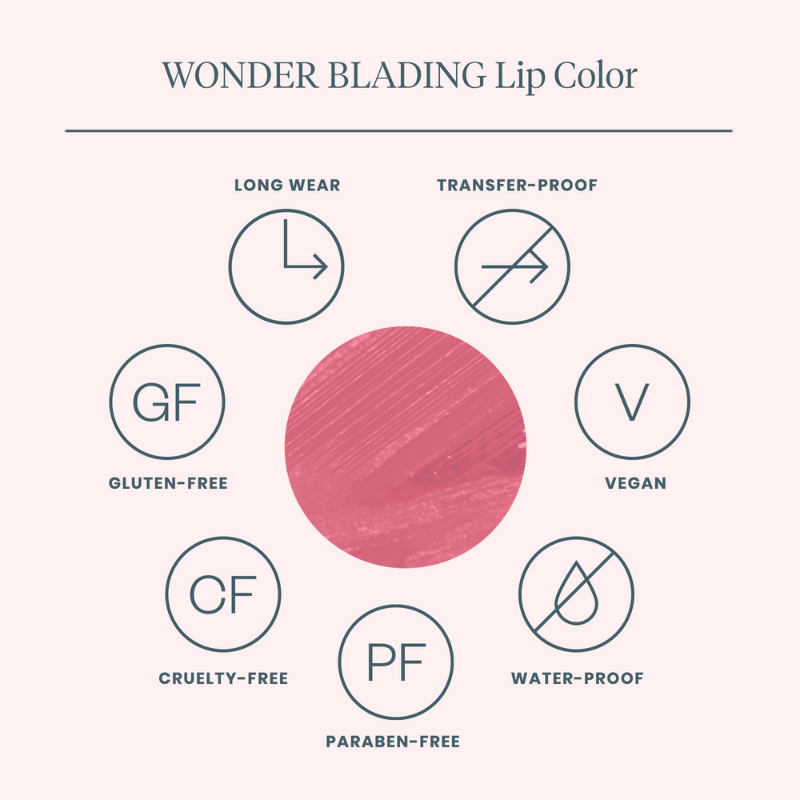 Den plejende & alkoholfri Wonderblading Lip Stain farveteknologi giver et smukt farveaftryk på dine læber, uden at smitte af eller tvære ud og tilbyder et hav af fantastiske nuancer, der holder i timevis